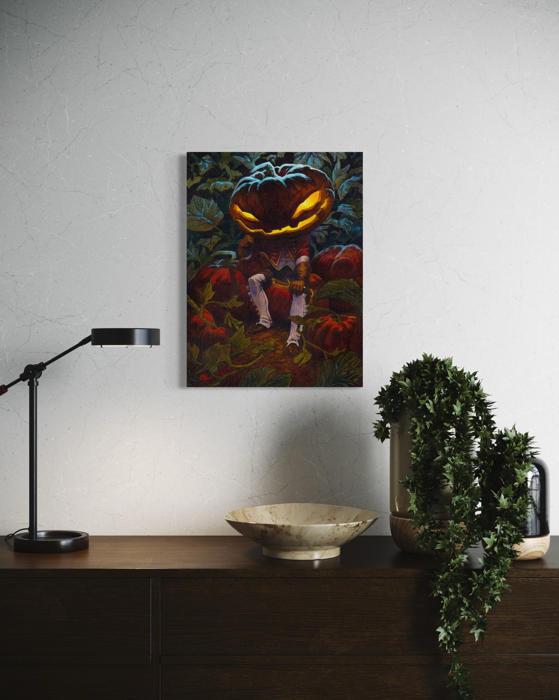 Have you heard of Pumpkin Jack? Out in Potter's Field? He has no soul, or so the legend goes, so he waits for one to steal. Acrylic and colored pencil, now available as a fine art print.