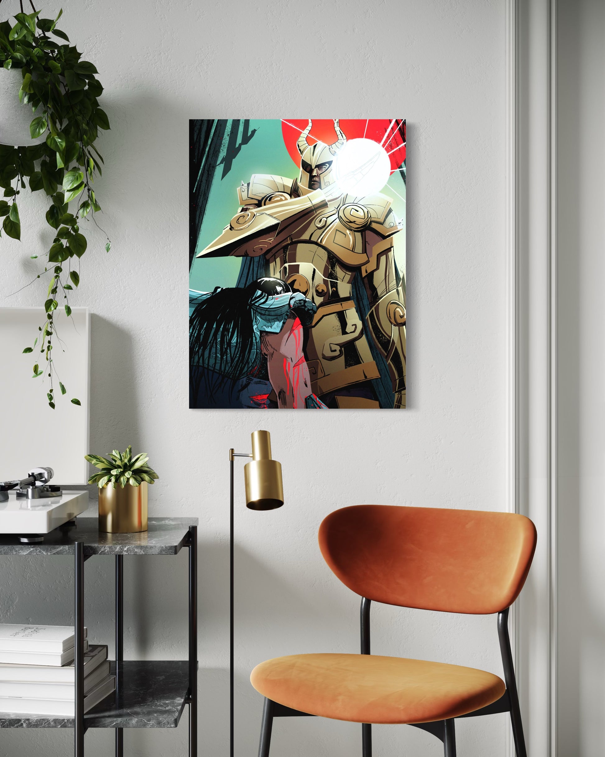 Inspired by a classic battle from the anime Saint Seiya. This beautiful art is available as fine art prints.